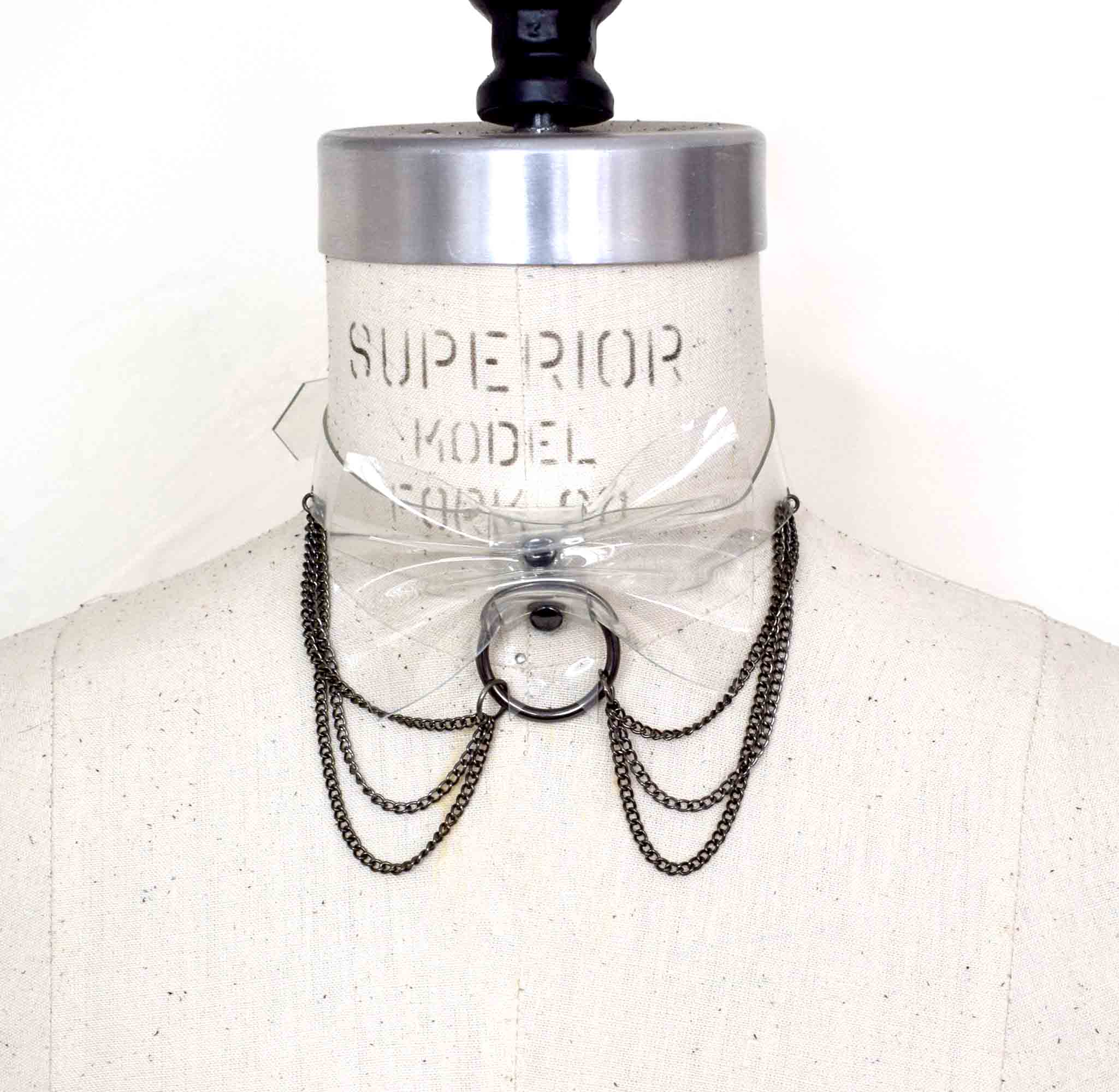 Front view of the Clear PVC Bow Collar Chains