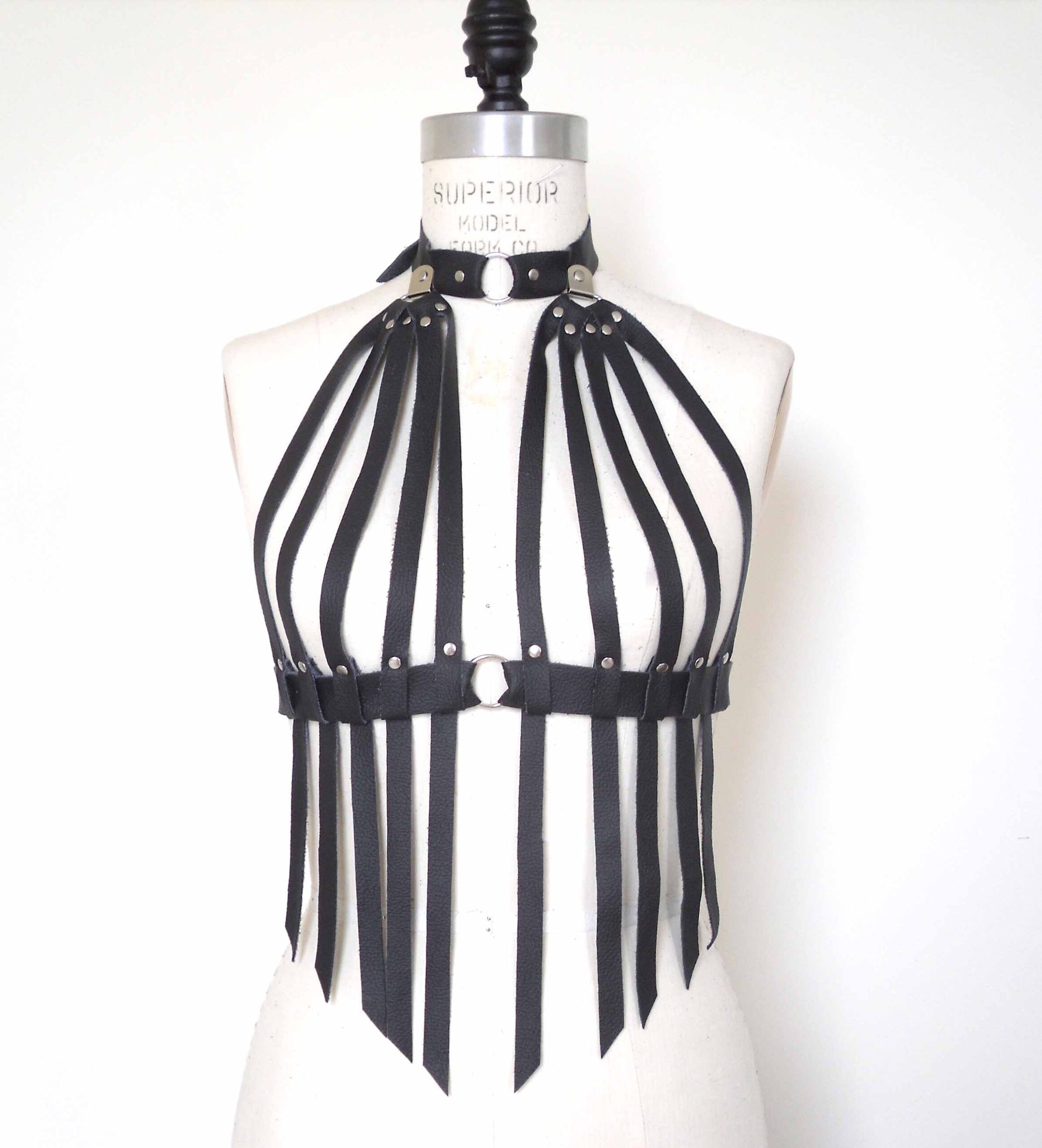 Lovely peek-a-boo style leather fringe bra, made from super soft genuine leather.