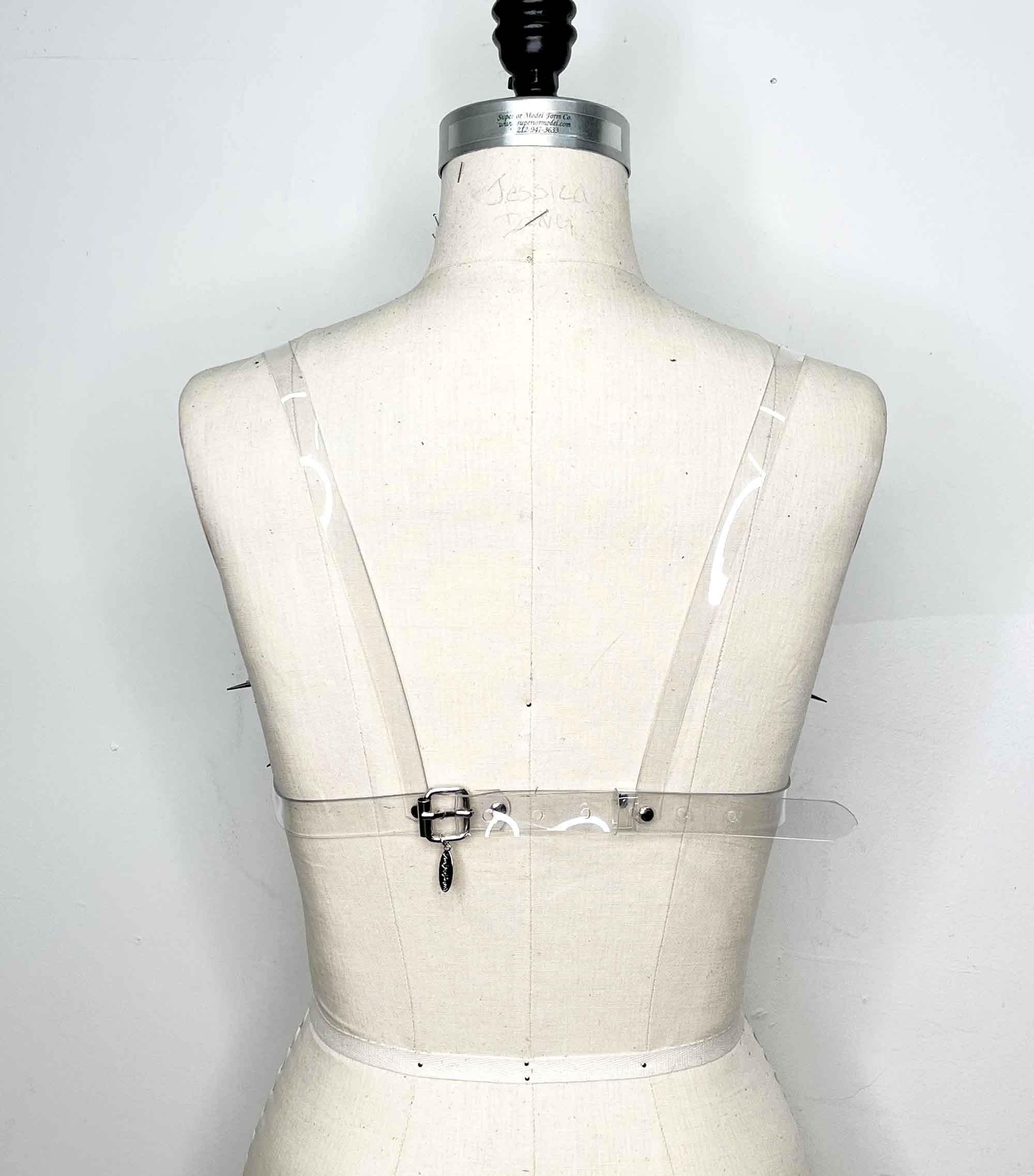 - Underbust band is ¾” wide and closes at the back with a buckle.