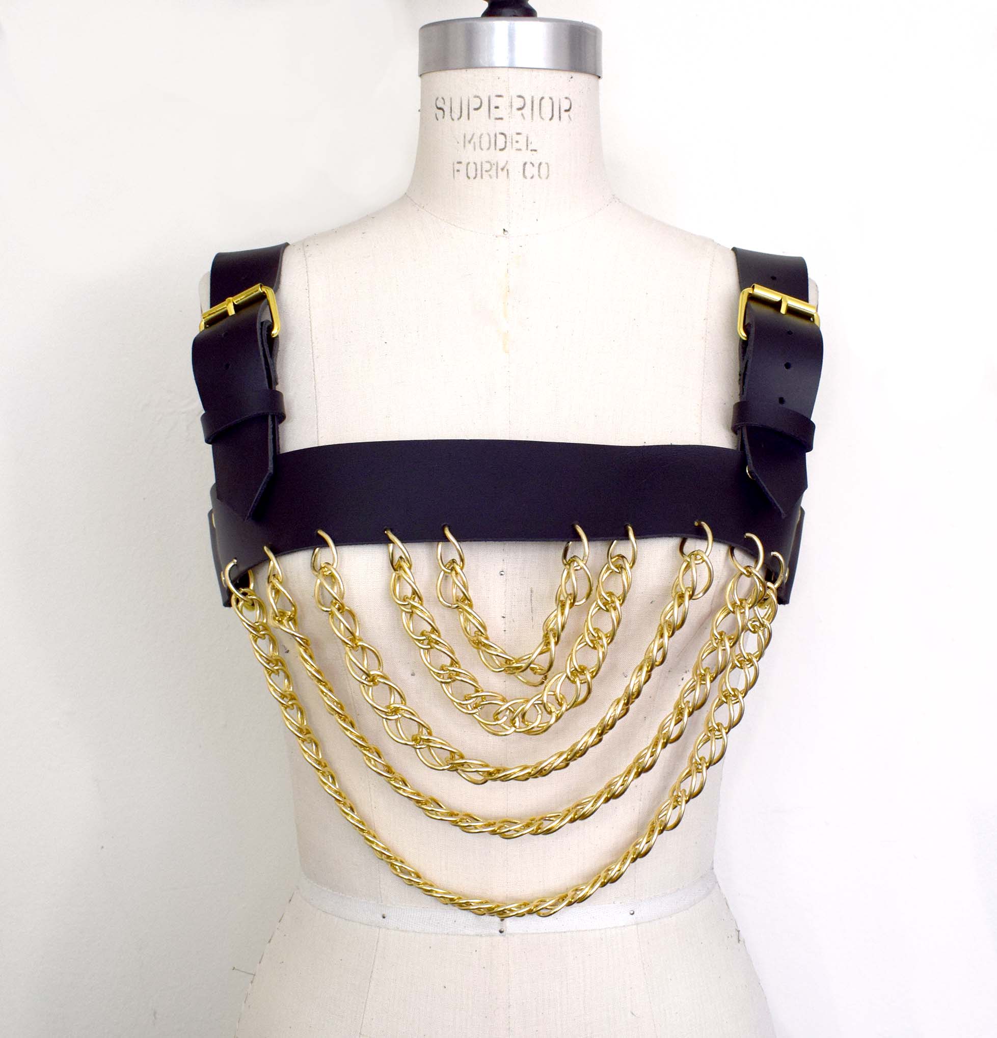 Channel those mob Daddy vibes in the dramatic Chiara Chain Leather Harness, where gleaming gold chain can help you steal the spotlight.