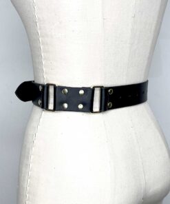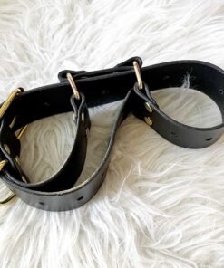 - 1 ½” wide leather hobble belt with buckle closure. This belt transforms into hand or ankle cuffs!