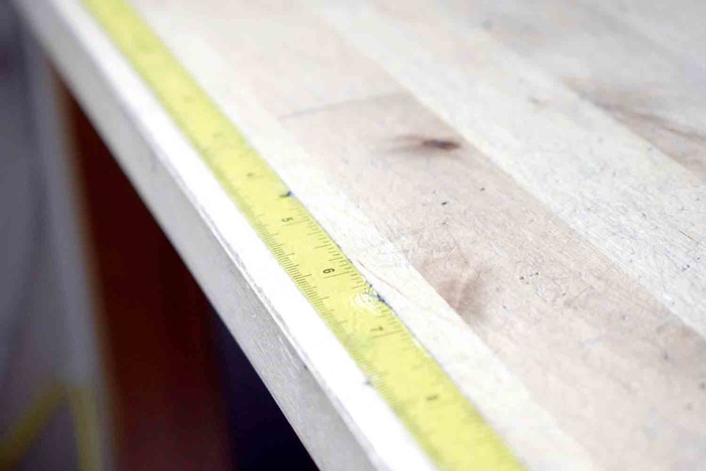 And of course, here lies my actual work table! It’s a simple wooden kitchen table I inherited from a roommate years ago. I added this measuring tape to the edge which has proven to be a super helpful thing to have. Also it faces the television because of course I need entertainment while I’m working! I plow through a lot of movies and tv series like this.